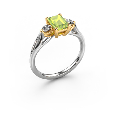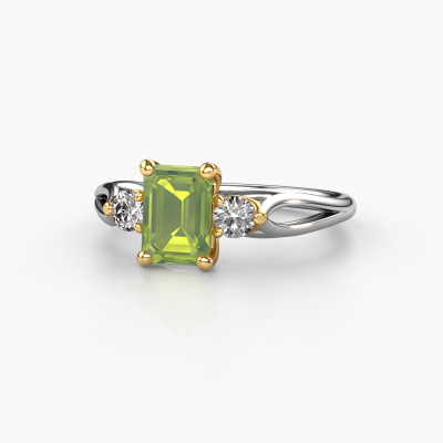This 14 Carat white gold ring is called Amie EME and is set with 7x5 mm peridot. This exclusive white gold 3-stone engagement ring is a true work of art! The ornaments are crafted with a lot of patience and great passion. In order to create this ring with great precision, this craft requires a keen eye and skilful hand. A challenge which ignites a fire in our expert goldsmith. The exquisite peridot are set in a special way so they stand out even more. This gives the ring an even more glamorous appearance. The tasteful engagement ring is actually unique on its own because of the gemstones which we carefully select especially for this ring. On top of that you select the precious metals which will be used to create a unique ring for the most extraordinary woman in your life! This jewel is made to shine bright around your finger. Each jewel is hand made with love by our goldsmiths.Are you on a budget? Please feel free to contact us, so we can go discuss your options. We offer our engagement rings at guaranteed best price, because we make them to order. You won't find such a price anywhere else!Our team adds new designs to our online collection daily. Our designers and goldsmiths work together in creating the best design. We strive to offer a diverse collection of jewels. Perhaps you have a specific jewel design in mind. One you came across somewhere. Please contact us for a free consultation. We will make you an offer, based on a fair price/ quality ratio, that will baffle you.To make it easier for you, we offer a 30 day return policy. Check our terms and conditions.