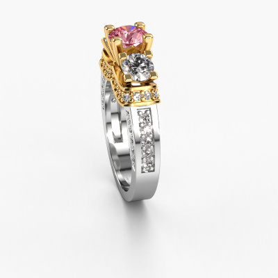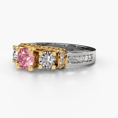 This 14 Carat white gold ring is called Phileine and is set with 5 mm pink lab grown diamond. This exclusive white gold 3-stone engagement ring is a true work of art! The ornaments are crafted with a lot of patience and great passion. In order to create this ring with great precision, this craft requires a keen eye and skilful hand. A challenge which ignites a fire in our expert goldsmith. The exquisite pink lab grown diamonds are set in a special way so they stand out even more. This gives the ring an even more glamorous appearance. The daring engagement ring is actually unique on its own because of the gemstones which we carefully select especially for this ring. On top of that you select the precious metals which will be used to create a unique ring for the most extraordinary woman in your life! This jewel is made with passion and love by one of our master goldsmiths.After receiving your order, our goldsmiths will passionately start the creative process of making your engagement ring in our own studio. Because we don't have a big stockpile, these costs will not be passed on to you. Our pricing is proof of that! We offer top quality jewels at lowest price, guaranteed.Different styles of new rings are made daily by our team. Perhaps you have found a 3-stone engagement ring somewhere. One you would like to give to your loved one. Please feel free to share your thoughts and design with our jewel designers. We would love to turn your design into a exclusive engagement ring. You can follow the development of your ring design because we use very detailed 3D drawings. On top of that, you can order a dummy of the design. A dummy is a plastic ring, which can be shaped according your ring design. You can try it on and check if the engagement ring is up to standard. We will gladly send you a non-binding offer, based on a fair price/ quality ratio. The offer will baffle you, considering the quality of the ring and gemstones.To make it easier for you, we offer a 30 day return policy. Check our terms and conditions.