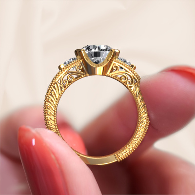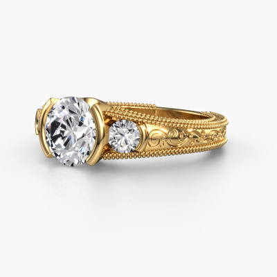 This 14 Carat gold ring is called Tasia and is set with 2.40 crt lab grown diamond. Is your girlfriend hooked on vintage? Then this gold filigree promise ring will surely match her style perfectly. A trendy ring with just a hint of vintage adornment. A truly stunning, romantic design! Especially when you customize your ring to your own liking. This vintage 3-stone promise ring is set with stunning lab-grown diamonds. As you can see, you are the boss in selecting a gemstone which matches the style of your girlfriend best. Each gemstone is carefully selected by our merchants whom are spread throughout the world. Nothing but the best gems for our expert goldsmith. After all, it is his crowning glory! Each jewel is made with passion and love by one of our master goldsmiths.By using a combination of the latest modern techniques, combined with ancient crafting, we can make all our promise ring in our own studio. Each jewel is made to order. This is advantageous because we can offer you a price you won't find anywhere else.Our team adds new designs to our online collection daily. Our designers and goldsmiths work together in creating the best design. We strive to offer a diverse collection of jewels. Perhaps you have a specific jewel design in mind. One you came across somewhere. Please contact us for a free consultation. We will make you an offer, based on a fair price/ quality ratio, that will baffle you.To make it easier for you, we offer a 30 day return policy. Check our terms and conditions.