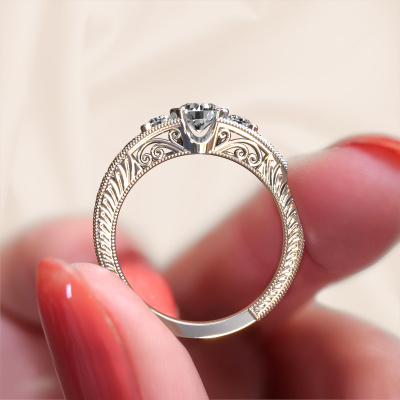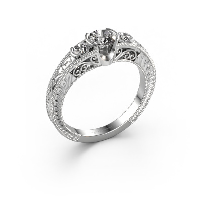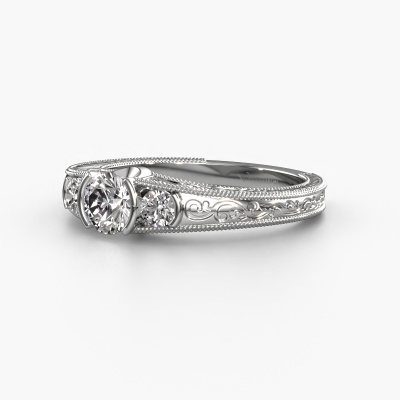 This 14 Carat white gold ring is called Tasia and is set with 5 mm zirconia. Is your girlfriend hooked on vintage? Then this white gold filigree promise ring will surely match her style perfectly. A trendy ring with just a hint of vintage adornment. A truly stunning, romantic design! Especially when you customize your ring to your own liking. This vintage 3-stone promise ring is set with stunning cz-stones. As you can see, you are the boss in selecting a gemstone which matches the style of your girlfriend best. Each gemstone is carefully selected by our merchants whom are spread throughout the world. Nothing but the best gems for our expert goldsmith. After all, it is his crowning glory! Each jewel is made with passion and love by one of our master goldsmiths.By using a combination of the latest modern techniques, combined with ancient crafting, we can make all our promise ring in our own studio. Each jewel is made to order. This is advantageous because we can offer you a price you won't find anywhere else.Our team adds new designs to our online collection daily. Our designers and goldsmiths work together in creating the best design. We strive to offer a diverse collection of jewels. Perhaps you have a specific jewel design in mind. One you came across somewhere. Please contact us for a free consultation. We will make you an offer, based on a fair price/ quality ratio, that will baffle you.To make it easier for you, we offer a 30 day return policy. Check our terms and conditions.