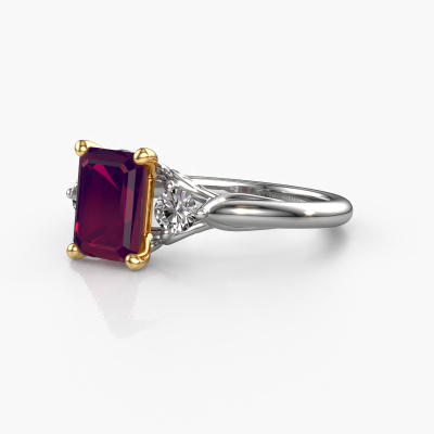 This 14 Carat white gold ring is called Laurian EME and is set with 8x6 mm rhodolite. This exclusive white gold 3-stone engagement ring is a true work of art! The ornaments are crafted with a lot of patience and great passion. In order to create this ring with great precision, this craft requires a keen eye and skilful hand. A challenge which ignites a fire in our expert goldsmith. The exquisite rhodolite are set in a special way so they stand out even more. This gives the ring an even more glamorous appearance. The special engagement ring is actually unique on its own because of the gemstones which we carefully select especially for this ring. On top of that you select the precious metals which will be used to create a unique ring for the most extraordinary woman in your life! This jewel is unique in every way! Simply customize to your liking,By using a combination of the latest modern techniques, combined with ancient crafting, we can make all our engagement rings in our own studio. Each jewel is made to order. This is advantageous because we can offer you a price you won't find anywhere else.Our team adds new designs to our online collection daily. Our designers and goldsmiths work together in creating the best design. We strive to offer a diverse collection of jewels. Perhaps you have a specific jewel design in mind. One you came across somewhere. Please contact us for a free consultation. We will make you an offer, based on a fair price/ quality ratio, that will baffle you.To make it easier for you, we offer a 30 day return policy. Check our terms and conditions.