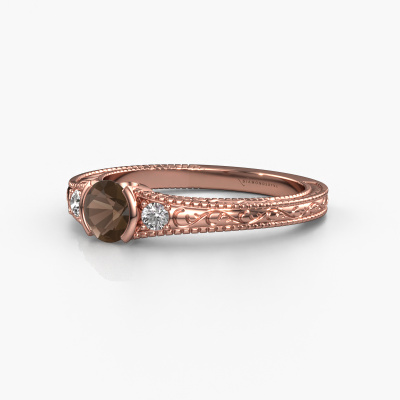 This 14 Carat rose gold ring is called Anamaria and is set with 5 mm smokey quartz. An extraordinary rose gold vintage ring. One that will surely make the love of your life shine like a diamond! That is what we hope to achieve. This vintage engagement ring is set with exquisite smokey quartz. Whichever gemstone you choose from our selection, is up to you. The gemstone is selected with great care because we believe your filigree engagement ring must be adorned with nothing but the most beautiful gemstone. Wouldn't you agree? Our expert goldsmith will design your ring in our own crafting studio, where the smokey quartz will be set with great precision. The ring will then be polished till it shines perfectly. Nothing but the best for the love of your life! This jewel is made just for you by our master goldsmiths in our own studio.Are you on a budget? Please feel free to contact us, so we can go discuss your options. We offer our engagement rings at guaranteed best price, because we make them to order. You won't find such a price anywhere else!Our team adds new designs to our online collection daily. Our designers and goldsmiths work together in creating the best design. We strive to offer a diverse collection of jewels. Perhaps you have a specific jewel design in mind. One you came across somewhere. Please contact us for a free consultation. We will make you an offer, based on a fair price/ quality ratio, that will baffle you.To make it easier for you, we offer a 30 day return policy. Check our terms and conditions.