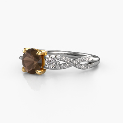 This 14 Carat white gold ring is called Marilou RND and is set with 6.5 mm smokey quartz. This exclusive white gold 3-stone engagement ring is a true work of art! The ornaments are crafted with a lot of patience and great passion. In order to create this ring with great precision, this craft requires a keen eye and skilful hand. A challenge which ignites a fire in our expert goldsmith. The exquisite smokey quartz are set in a special way so they stand out even more. This gives the ring an even more glamorous appearance. The split band engagement ring is actually unique on its own because of the gemstones which we carefully select especially for this ring. On top of that you select the precious metals which will be used to create a unique ring for the most extraordinary woman in your life! This jewel is made just for you, with attention to detail and design.Are you on a budget? Please feel free to contact us, so we can go discuss your options. We offer our engagement rings at guaranteed best price, because we make them to order. You won't find such a price anywhere else!Have you found a specific engagement ring somewhere which you would like to give to your loved one? Please feel free to express your wishes to our jewel designers because we would be honoured to turn your design into a fantasy engagement ring. You can follow the development of your ring design because we use 3D drawings. This gives you a realistic preview of how your design will look. You can also preorder a dummy. A dummy is a plastic ring, which can be shaped according your ring design. You can try it on and check if its width and size are suitable for you. We will gladly send you a non-binding offer, based on a fair price/ quality ratio. It will amaze you, considering the quality of the ring and gemstones.To make it easier for you, we offer a 30 day return policy. Check our terms and conditions.