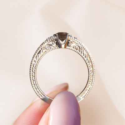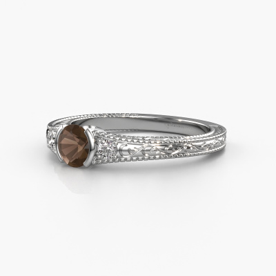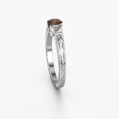 This 14 Carat white gold ring is called Anamaria and is set with 5 mm smokey quartz. An extraordinary white gold vintage ring. One that will surely make the love of your life shine like a diamond! That is what we hope to achieve. This vintage engagement ring is set with exquisite smokey quartz. Whichever gemstone you choose from our selection, is up to you. The gemstone is selected with great care because we believe your filigree engagement ring must be adorned with nothing but the most beautiful gemstone. Wouldn't you agree? Our expert goldsmith will design your ring in our own crafting studio, where the smokey quartz will be set with great precision. The ring will then be polished till it shines perfectly. Nothing but the best for the love of your life! This jewel is made just for you by our master goldsmiths in our own studio.Are you on a budget? Please feel free to contact us, so we can go discuss your options. We offer our engagement rings at guaranteed best price, because we make them to order. You won't find such a price anywhere else!Our team adds new designs to our online collection daily. Our designers and goldsmiths work together in creating the best design. We strive to offer a diverse collection of jewels. Perhaps you have a specific jewel design in mind. One you came across somewhere. Please contact us for a free consultation. We will make you an offer, based on a fair price/ quality ratio, that will baffle you.To make it easier for you, we offer a 30 day return policy. Check our terms and conditions.