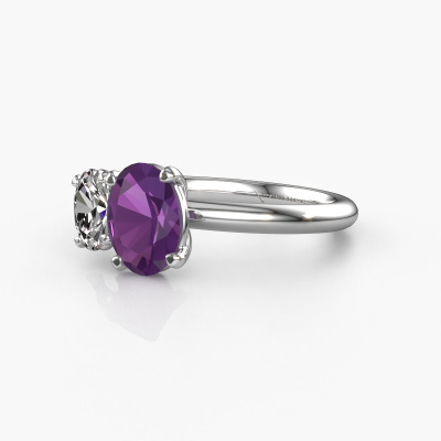 This 14 Carat white gold ring is called Toi et Moi OVL-OVL and is set with amethyst. How would you describe the style of the love of your life? Does she have a unique sense of style? This stunning sublime white gold engagement ring can be custom-made to your own or her liking. Our amethysten gemstones have been carefully selected because we believe your modern engagement ring must be adorned with nothing but the most beautiful gemstone. Don't you agree? This jewel is made by a team of passionate goldsmiths and jewel designers. This will make your crown jewel truly eye-catching.After receiving your order, our goldsmiths will start the creative process of making your Toi et Moi OVL-OVL engagement ring. We don't keep stock. This is advantageous because these costs will not be passed on to you. Therefore, we can offer jewellery at exceptionally low prices.Different styles of new rings are made daily by our team. Perhaps you have found a 2 stone engagement ring somewhere. One you would like to give to your loved one. Please feel free to share your thoughts and design with our jewel designers. We would love to turn your design into a modern engagement ring. You can follow the development of your ring design because we use very detailed 3D drawings. On top of that, you can order a dummy of the design. A dummy is a plastic ring, which can be shaped according your ring design. You can try it on and check if the engagement ring is up to standard. We will gladly send you a non-binding offer, based on a fair price/ quality ratio. The offer will baffle you, considering the quality of the ring and gemstones.To make it easier for you, we offer a 30 day return policy. Check our terms and conditions.