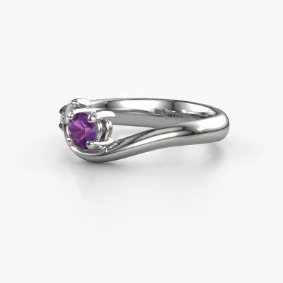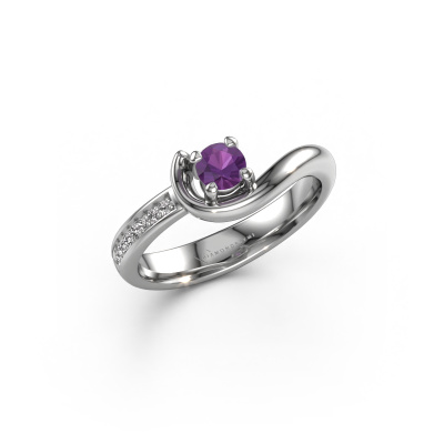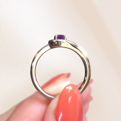 The ring shown above is called the Ceylin, we call this a solitaire ring because it contains a single gemstone. The engagement ring is made in platinum and has a round amethyst of 4 mm. The cool thing about our configurator is that you can compile your own piece of jewellery, into a completely personalized one. This solitaire ring is crafted in the precious metals platinum with platinum, but of course you are free to pick your own colours. Each piece of jewellery is unique in every way! Simply customize to your liking,The solitaire ring is a special type of engagement ring. Its open prong setting allows light to strike the gemstone from various angles. This fantasy engagement ring is a stunning eye-catcher because of the high positioning of the gemstone. In order for you to commemorate your proposal with a unique ring, we carefully adorn this solitaire ring by hand. The love of your life deserves nothing but the best. Are you on a budget? Please feel free to contact us, so we can go discuss your options. We offer our engagement rings at guaranteed best price, because we make them to order. You won't find such a price anywhere else!Have you found a specific engagement ring somewhere which you would like to give to your loved one? Please feel free to express your wishes to our jewel designers because we would be honoured to turn your design into a fantasy engagement ring. You can follow the development of your ring design because we use 3D drawings. This gives you a realistic preview of how your design will look. You can also preorder a dummy. A dummy is a plastic ring, which can be shaped according your ring design. You can try it on and check if its width and size are suitable for you. We will gladly send you a non-binding offer, based on a fair price/ quality ratio. It will amaze you, considering the quality of the ring and gemstones.To make it easier for you, we offer a 30 day return policy. Check our terms and conditions.