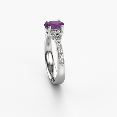 This platinum ring is called Lucy 2 and is set with amethyst. How would you describe the style of the love of your life? Does she have a unique sense of style? This stunning graceful platinum engagement ring can be custom-made to your own or her liking. Our amethysten gemstones have been carefully selected because we believe your classic engagement ring must be adorned with nothing but the most beautiful gemstone. Don't you agree? This jewel is made to shine bright around your finger. Each jewel is hand made with love by our goldsmiths.By using our modern techniques, we can design and customize the finest quality jewels with the utmost care for you. Our engagement rings are always priced 30 percent lower than other jewellers. We make engagement rings to order so we don't have to maintain a large stock. If you have a certain budget, we are more than happy to advice you accordingly.Do you have a specific ring in mind? One you came across somewhere. Please feel free to tell us your wishes and we will turn your design into a unique engagement ring. You can follow the development of your ring design because we use 3D drawings. This gives you a realistic preview of your design. We will gladly send you a non-binding offer, based on a fair price/ quality ratio. It will amaze you.To make it easier for you, we offer a 30 day return policy. Check our terms and conditions.