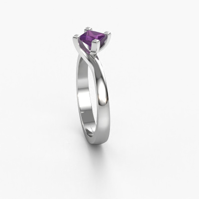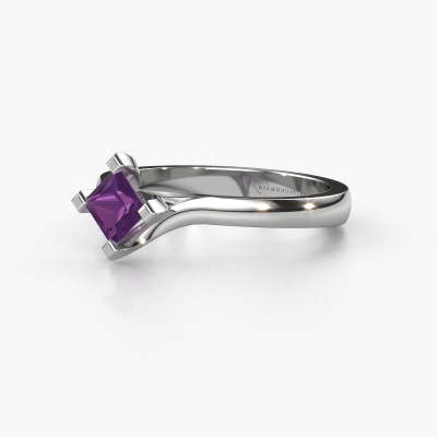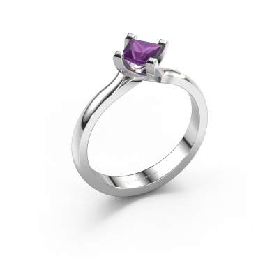 In your eyes, no one else compares to her. She is one in a million, unlike anyone else and pure? These qualities are emphasized perfectly by our modern platinum solitaire amethyst ring. This amethyst is carefully selected by our keen artisan goldsmiths. It equals the unique qualities of the love of your life. There is no better way to memorialize your proposal than this symbol of true love. The ring shown above is called the Dewi Square, we call this a solitaire ring because it contains a single gemstone. The Engagement ring is made in platinum and has a princess amethyst of 4 mm. Each piece of jewellery is made just for you by our master goldsmiths in our own studio.By using a combination of the latest modern techniques, combined with ancient crafting, we can make all our Engagement rings in our own studio. Each jewel is made to order. This is advantageous because we can offer you a price you won't find anywhere else.Our designers and goldsmiths work together each day, creating new jewels. Perhaps you have found a nice modern Engagement ring somewhere, which can be used to customize your unique ring. Please feel free to contact us. We will make you an offer, based on a fair price/ quality ratio, which will amaze you.To make it easier for you, we offer a 30 day return policy. Check our terms and conditions.