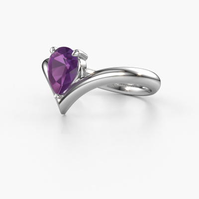 In your eyes, no one else compares to her. She is one in a million, unlike anyone else and pure? These qualities are emphasized perfectly by our modern platinum solitaire amethyst ring. This amethyst is carefully selected by our keen artisan goldsmiths. It equals the unique qualities of the love of your life. There is no better way to memorialize your proposal than this symbol of true love. The ring shown above is called the Maddy PER, we call this a solitaire ring because it contains a single gemstone. The engagement ring is made in platinum and has a pear amethyst of 8x6 mm. Each piece of jewellery is made with passion and love by one of our master goldsmiths.After receiving your order, our goldsmiths will passionately start the creative process of making your engagement ring in our own studio. Because we don't have a big stockpile, these costs will not be passed on to you. Our pricing is proof of that! We offer top quality jewels at lowest price, guaranteed.Our team adds new designs to our online collection daily. Our designers and goldsmiths work together in creating the best design. We strive to offer a diverse collection of jewels. Perhaps you have a specific jewel design in mind. One you came across somewhere. Please contact us for a free consultation. We will make you an offer, based on a fair price/ quality ratio, that will baffle you.To make it easier for you, we offer a 30 day return policy. Check our terms and conditions.