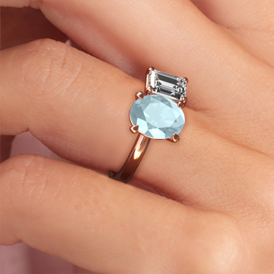 This 14 Carat rose gold ring is called Toi et Moi OVL-EME and is set with 9x7 mm aquamarine. What is it that makes your relationship unique? What is it about her that makes you want to bend down on one knee? The unique bond between the two of you is emphasized by an equally unique ring. A one of a kind charming 2 stone engagement ring made especially for her. That is why this exclusive ring fits her like a glove. Each specific detail of this charming rose gold aquamarine set engagement ring is hand-picked, crafted and polished by our expert goldsmith. The result is an exquisite ring, unique and perfectly crafted to perfection. That is what our expert Goldsmiths strive for. This jewel is made just for you, with attention to detail and design.After receiving your order, our goldsmiths will start the creative process of making your Toi et Moi OVL-EME engagement ring. We don't keep stock. This is advantageous because these costs will not be passed on to you. Therefore, we can offer jewellery at exceptionally low prices.Our team adds new designs to our online collection daily. Our designers and goldsmiths work together in creating the best design. We strive to offer a diverse collection of jewels. Perhaps you have a specific jewel design in mind. One you came across somewhere. Please contact us for a free consultation. We will make you an offer, based on a fair price/ quality ratio, that will baffle you.To make it easier for you, we offer a 30 day return policy. Check our terms and conditions.