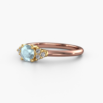 This 14 Carat rose gold ring is called Felipa RND and is set with 5 mm aquamarine. What is it that makes your relationship unique? What is it about her that makes you want to bend down on one knee? The unique bond between the two of you is emphasized by an equally unique ring. A one of a kind ajour 3-stone engagement ring made especially for her. That is why this fantasy ring fits her like a glove. Each specific detail of this ajour rose gold aquamarine set engagement ring is hand-picked, crafted and polished by our expert goldsmith. The result is an exquisite ring, unique and perfectly crafted to perfection. That is what our expert Goldsmiths strive for. This jewel is made just for you by our master goldsmiths in our own studio.After receiving your order, our goldsmiths will passionately start the creative process of making your engagement ring in our own studio. Because we don't have a big stockpile, these costs will not be passed on to you. Our pricing is proof of that! We offer top quality jewels at lowest price, guaranteed.Have you found a specific engagement ring somewhere which you would like to give to your loved one? Please feel free to express your wishes to our jewel designers because we would be honoured to turn your design into a fantasy engagement ring. You can follow the development of your ring design because we use 3D drawings. This gives you a realistic preview of how your design will look. You can also preorder a dummy. A dummy is a plastic ring, which can be shaped according your ring design. You can try it on and check if its width and size are suitable for you. We will gladly send you a non-binding offer, based on a fair price/ quality ratio. It will amaze you, considering the quality of the ring and gemstones.To make it easier for you, we offer a 30 day return policy. Check our terms and conditions.