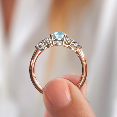 This 14 Carat rose gold ring is called Melani RND and is set with aquamarine. How would you describe the style of the love of your life? Does she have a unique sense of style? This stunning charming rose gold engagement ring can be custom-made to your own or her liking. Our aquamarine gemstones have been carefully selected because we believe your contemporary engagement ring must be adorned with nothing but the most beautiful gemstone. Don't you agree? This jewel is made just for you by our master goldsmiths in our own studio.Because we design and deliver our own rings, we can offer you a engagement ring at a price you won't find anywhere else. A ring is made to order, which helps prevent excess supplies, so we can make you a great price offer. We understand it feels risky, buying your engagement ring online, but we will gladly assist in the designing process, taking your budget into consideration.Our team adds new designs to our online collection daily. Our designers and goldsmiths work together in creating the best design. We strive to offer a diverse collection of jewels. Perhaps you have a specific jewel design in mind. One you came across somewhere. Please contact us for a free consultation. We will make you an offer, based on a fair price/ quality ratio, that will baffle you.To make it easier for you, we offer a 30 day return policy. Check our terms and conditions.