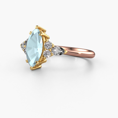 This 14 Carat rose gold ring is called Melani MRQ and is set with 11x5.5 mm aquamarine. What is it that makes your relationship unique? What is it about her that makes you want to bend down on one knee? The unique bond between the two of you is emphasized by an equally unique ring. A one of a kind graceful cluster engagement ring made especially for her. That is why this trendy ring fits her like a glove. Each specific detail of this graceful rose gold aquamarine set engagement ring is hand-picked, crafted and polished by our expert goldsmith. The result is an exquisite ring, unique and perfectly crafted to perfection. That is what our expert Goldsmiths strive for. This jewel is made just for you, with attention to detail and design.After receiving your order, our goldsmiths will passionately start the creative process of making your engagement ring in our own studio. Because we don't have a big stockpile, these costs will not be passed on to you. Our pricing is proof of that! We offer top quality jewels at lowest price, guaranteed.Do you have a specific ring in mind? One you came across somewhere. Please feel free to tell us your wishes and we will turn your design into a unique engagement ring. You can follow the development of your ring design because we use 3D drawings. This gives you a realistic preview of your design. We will gladly send you a non-binding offer, based on a fair price/ quality ratio. It will amaze you.To make it easier for you, we offer a 30 day return policy. Check our terms and conditions.