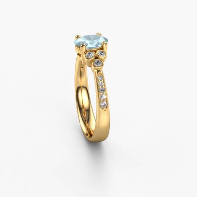 This 14 Carat gold ring is called Lucy 2 and is set with aquamarine. How would you describe the style of the love of your life? Does she have a unique sense of style? This stunning graceful gold engagement ring can be custom-made to your own or her liking. Our aquamarine gemstones have been carefully selected because we believe your classic engagement ring must be adorned with nothing but the most beautiful gemstone. Don't you agree? This jewel is made to shine bright around your finger. Each jewel is hand made with love by our goldsmiths.By using our modern techniques, we can design and customize the finest quality jewels with the utmost care for you. Our engagement rings are always priced 30 percent lower than other jewellers. We make engagement rings to order so we don't have to maintain a large stock. If you have a certain budget, we are more than happy to advice you accordingly.Do you have a specific ring in mind? One you came across somewhere. Please feel free to tell us your wishes and we will turn your design into a unique engagement ring. You can follow the development of your ring design because we use 3D drawings. This gives you a realistic preview of your design. We will gladly send you a non-binding offer, based on a fair price/ quality ratio. It will amaze you.To make it easier for you, we offer a 30 day return policy. Check our terms and conditions.