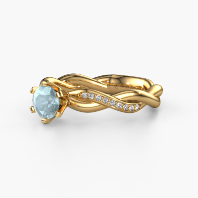 In your eyes, no one else compares to her. She is one in a million, unlike anyone else and pure? These qualities are emphasized perfectly by our fantasy gold solitaire aquamarine ring. This aquamarine is carefully selected by our keen artisan goldsmiths. It equals the unique qualities of the love of your life. There is no better way to memorialize your proposal than this symbol of true love. The ring shown above is called the Page, we call this a solitaire ring because it contains a single gemstone. The engagement ring is made in 14 Carat gold and has a round aquamarine of 5.4 mm. Each piece of jewellery is made with passion and love by one of our master goldsmiths.Are you on a budget? Please feel free to contact us, so we can go discuss your options. We offer our engagement rings at guaranteed best price, because we make them to order. You won't find such a price anywhere else!Do you have a specific ring in mind? One you came across somewhere. Please feel free to tell us your wishes and we will turn your design into a unique engagement ring. You can follow the development of your ring design because we use 3D drawings. This gives you a realistic preview of your design. We will gladly send you a non-binding offer, based on a fair price/ quality ratio. It will amaze you.To make it easier for you, we offer a 30 day return policy. Check our terms and conditions.