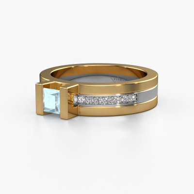 The ring shown above is called the Desire. We call this type of ring a pavé solitaire ring because it has one centre gemstone and a band that is also pave set with gemstones. The 14 Carat gold engagement ring is set with a princess 4 mm aquamarine centre stone and the band is pave set with diamond gemstones. Each jewel is made just for you by our master goldsmiths in our own studio.This modern gold pavé solitaire engagement ring has an exquisite princess aquamarine centre stone. To further accentuate the centre stone, the band is fully set with more diamonds. Its open prong setting allows light to strike the aquamarine from various angles and this adds sparkle to your aquamarine ring. The photo shown above depicts the goldsmith's carefully handcrafted details of the ring. The high positioning of the centre stone is truly eye-catching. The perfect engagement ring for the crown jewel of your life! By using a combination of the latest modern techniques, combined with ancient crafting, we can make all our engagement rings in our own studio. Each jewel is made to order. This is advantageous because we can offer you a price you won't find anywhere else.Have you found a specific engagement ring somewhere which you would like to give to your loved one? Please feel free to express your wishes to our jewel designers because we would be honoured to turn your design into a modern engagement ring. You can follow the development of your ring design because we use 3D drawings. This gives you a realistic preview of how your design will look. You can also preorder a dummy. A dummy is a plastic ring, which can be shaped according your ring design. You can try it on and check if its width and size are suitable for you. We will gladly send you a non-binding offer, based on a fair price/ quality ratio. It will amaze you, considering the quality of the ring and gemstones.To make it easier for you, we offer a 30 day return policy. Check our terms and conditions.