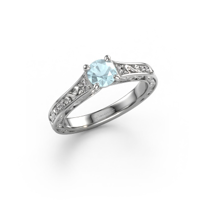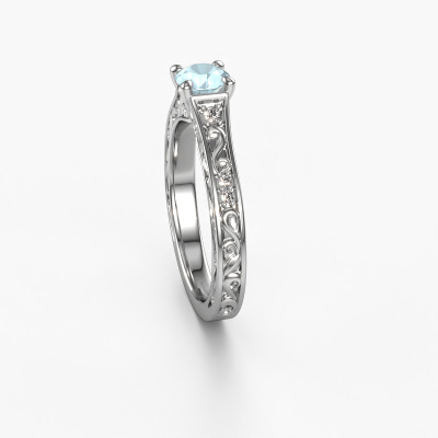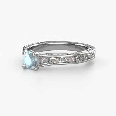 The ring shown above is called the Mallory rnd. We call this type of ring a pavé solitaire ring because it has one centre gemstone and a band that is also pave set with gemstones. This engagement ring is made in platinum set with a 5 mm round aquamarine, and pave set lab-grown diamonds at the sides. Each piece of jewellery is made just for you by our master goldsmiths in our own studio.This vintage platinum pavé solitaire engagement ring has an exquisite round aquamarine centre stone. To further accentuate the centre stone, the band is set full with more lab-grown diamonds. Its open prong setting allows light to strike the aquamarine from various angles and this adds sparkle to your aquamarine ring. The photo shown above depicts the goldsmith's carefully handcrafted details of the ring. The high positioning of the centre stone is truly eye-catching. The perfect engagement ring for the crown jewel of your life!Because we design and deliver our own rings, we can offer you a engagement ring at a price you won't find anywhere else. A ring is made to order, which helps prevent excess supplies, so we can make you a great price offer. We understand it feels risky, buying your engagement ring online, but we will gladly assist in the designing process, taking your budget into consideration.Different styles of new rings are made daily by our team. Perhaps you have found a pavé solitaire engagement ring somewhere. One you would like to give to your loved one. Please feel free to share your thoughts and design with our jewel designers. We would love to turn your design into a vintage engagement ring. You can follow the development of your ring design because we use very detailed 3D drawings. On top of that, you can order a dummy of the design. A dummy is a plastic ring, which can be shaped according your ring design. You can try it on and check if the engagement ring is up to standard. We will gladly send you a non-binding offer, based on a fair price/ quality ratio. The offer will baffle you, considering the quality of the ring and gemstones.To make it easier for you, we offer a 30 day return policy. Check our terms and conditions.