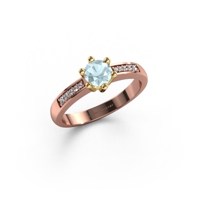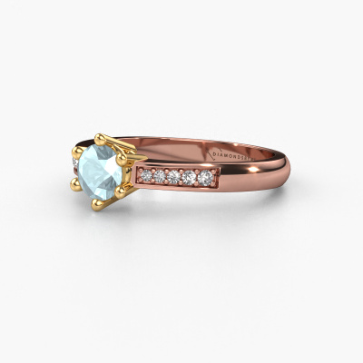 The ring shown above is called the Luna 2. We call this type of ring a pavé solitaire ring because it has one centre gemstone and a band that is also pave set with gemstones. This engagement ring is made in 14 Carat rose gold set with a 5 mm round aquamarine, and pave set diamonds at the sides. Each piece of jewellery is unique in every way! Simply customize to your liking,This classic rose gold pavé solitaire engagement ring has an exquisite round aquamarine centre stone. To further accentuate the centre stone, the band is set full with more diamonds. Its open prong setting allows light to strike the aquamarine from various angles and this adds sparkle to your aquamarine ring. The photo shown above depicts the goldsmith's carefully handcrafted details of the ring. The high positioning of the centre stone is truly eye-catching. The perfect engagement ring for the crown jewel of your life!Because we design and deliver our own rings, we can offer you a engagement ring at a price you won't find anywhere else. A ring is made to order, which helps prevent excess supplies, so we can make you a great price offer. We understand it feels risky, buying your engagement ring online, but we will gladly assist in the designing process, taking your budget into consideration.Our team adds new designs to our online collection daily. Our designers and goldsmiths work together in creating the best design. We strive to offer a diverse collection of jewels. Perhaps you have a specific jewel design in mind. One you came across somewhere. Please contact us for a free consultation. We will make you an offer, based on a fair price/ quality ratio, that will baffle you.To make it easier for you, we offer a 30 day return policy. Check our terms and conditions.