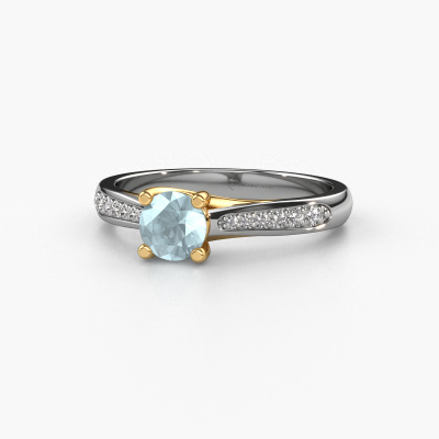 The ring shown above is called the Mia 2. We call this type of ring a pavé solitaire ring because it has one centre gemstone and a band that is also pave set with gemstones. This engagement ring is made in 14 Carat white gold set with a 5 mm round aquamarine, and pave set lab-grown diamonds at the sides. Each piece of jewellery is made just for you, with attention to detail and design.This modern white gold pavé solitaire engagement ring has an exquisite round aquamarine centre stone. To further accentuate the centre stone, the band is set full with more lab-grown diamonds. Its open prong setting allows light to strike the aquamarine from various angles and this adds sparkle to your aquamarine ring. The photo shown above depicts the goldsmith's carefully handcrafted details of the ring. The high positioning of the centre stone is truly eye-catching. The perfect engagement ring for the crown jewel of your life!By using our modern techniques, we can design and customize the finest quality jewels with the utmost care for you. Our engagement rings are always priced 30 percent lower than other jewellers. We make engagement rings to order so we don't have to maintain a large stock. If you have a certain budget, we are more than happy to advice you accordingly.Different styles of new rings are made daily by our team. Perhaps you have found a pavé solitaire engagement ring somewhere. One you would like to give to your loved one. Please feel free to share your thoughts and design with our jewel designers. We would love to turn your design into a modern engagement ring. You can follow the development of your ring design because we use very detailed 3D drawings. On top of that, you can order a dummy of the design. A dummy is a plastic ring, which can be shaped according your ring design. You can try it on and check if the engagement ring is up to standard. We will gladly send you a non-binding offer, based on a fair price/ quality ratio. The offer will baffle you, considering the quality of the ring and gemstones.To make it easier for you, we offer a 30 day return policy. Check our terms and conditions.