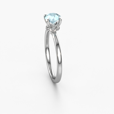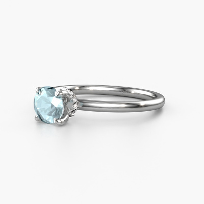 The ring shown above is called the Crystal RND 3, we call this a solitaire ring because it contains a single gemstone. The engagement ring is made in platinum and has a round aquamarine of 5.5 mm. The cool thing about our configurator is that you can compile your own piece of jewellery, into a completely personalized one. This solitaire ring is crafted in the precious metals platinum with platinum, but of course you are free to pick your own colours. Each piece of jewellery is made with passion and love by one of our master goldsmiths.The solitaire ring is a special type of engagement ring. Its open prong setting allows light to strike the gemstone from various angles. This classic engagement ring is a stunning eye-catcher because of the high positioning of the gemstone. In order for you to commemorate your proposal with a unique ring, we carefully adorn this solitaire ring by hand. The love of your life deserves nothing but the best. By using a combination of the latest modern techniques, combined with ancient crafting, we can make all our engagement rings in our own studio. Each jewel is made to order. This is advantageous because we can offer you a price you won't find anywhere else.Different styles of new rings are made daily by our team. Perhaps you have found a solitaire engagement ring somewhere. One you would like to give to your loved one. Please feel free to share your thoughts and design with our jewel designers. We would love to turn your design into a classic engagement ring. You can follow the development of your ring design because we use very detailed 3D drawings. On top of that, you can order a dummy of the design. A dummy is a plastic ring, which can be shaped according your ring design. You can try it on and check if the engagement ring is up to standard. We will gladly send you a non-binding offer, based on a fair price/ quality ratio. The offer will baffle you, considering the quality of the ring and gemstones.To make it easier for you, we offer a 30 day return policy. Check our terms and conditions.