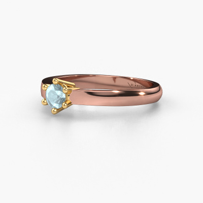 The ring shown above is called the Luna 1, we call this a solitaire ring because it contains a single gemstone. The engagement ring is made in 14 Carat rose gold and has a round aquamarine of 3.7 mm. The cool thing about our configurator is that you can compile your own piece of jewellery, into a completely personalized one. This solitaire ring is crafted in the precious metals rose gold with gold, but of course you are free to pick your own colours. Each piece of jewellery is made with passion and love by one of our master goldsmiths.The solitaire ring is a special type of engagement ring. Its open prong setting allows light to strike the gemstone from various angles. This classic engagement ring is a stunning eye-catcher because of the high positioning of the gemstone. In order for you to commemorate your proposal with a unique ring, we carefully adorn this solitaire ring by hand. The love of your life deserves nothing but the best. After receiving your order, our goldsmiths will start the creative process of making your Luna 1 engagement ring. We don't keep stock. This is advantageous because these costs will not be passed on to you. Therefore, we can offer jewellery at exceptionally low prices.Our designers and goldsmiths work together each day, creating new jewels. Perhaps you have found a nice classic engagement ring somewhere, which can be used to customize your unique ring. Please feel free to contact us. We will make you an offer, based on a fair price/ quality ratio, which will amaze you.To make it easier for you, we offer a 30 day return policy. Check our terms and conditions.