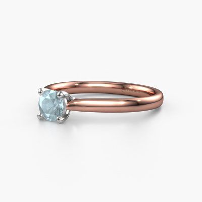 The ring shown above is called the Mignon rnd 1, we call this a solitaire ring because it contains a single gemstone. The engagement ring is made in 14 Carat rose gold and has a round aquamarine of 5 mm. The cool thing about our configurator is that you can compile your own piece of jewellery, into a completely personalized one. This solitaire ring is crafted in the precious metals rose gold with white gold, but of course you are free to pick your own colours. Each piece of jewellery is made with passion and love by one of our master goldsmiths.The solitaire ring is a special type of engagement ring. Its open prong setting allows light to strike the gemstone from various angles. This classic engagement ring is a stunning eye-catcher because of the high positioning of the gemstone. In order for you to commemorate your proposal with a unique ring, we carefully adorn this solitaire ring by hand. The love of your life deserves nothing but the best. After receiving your order, our goldsmiths will passionately start the creative process of making your engagement ring in our own studio. Because we don't have a big stockpile, these costs will not be passed on to you. Our pricing is proof of that! We offer top quality jewels at lowest price, guaranteed.Have you found a specific engagement ring somewhere which you would like to give to your loved one? Please feel free to express your wishes to our jewel designers because we would be honoured to turn your design into a classic engagement ring. You can follow the development of your ring design because we use 3D drawings. This gives you a realistic preview of how your design will look. You can also preorder a dummy. A dummy is a plastic ring, which can be shaped according your ring design. You can try it on and check if its width and size are suitable for you. We will gladly send you a non-binding offer, based on a fair price/ quality ratio. It will amaze you, considering the quality of the ring and gemstones.To make it easier for you, we offer a 30 day return policy. Check our terms and conditions.
