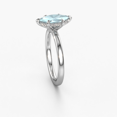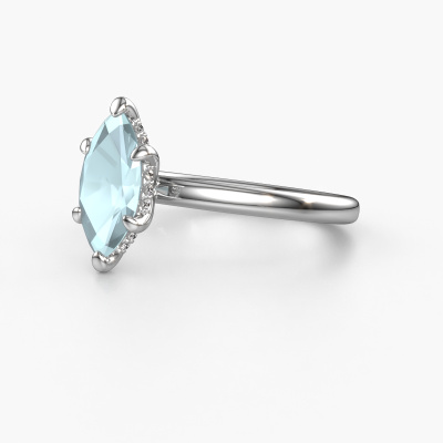 This platinum ring is called Simone MRQ 2 and is set with 11x5.5 mm aquamarine. What is it that makes your relationship unique? What is it about her that makes you want to bend down on one knee? The unique bond between the two of you is emphasized by an equally unique ring. A one of a kind round solitaire engagement ring made especially for her. That is why this fantasy ring fits her like a glove. Each specific detail of this round platinum aquamarine set engagement ring is hand-picked, crafted and polished by our expert goldsmith. The result is an exquisite ring, unique and perfectly crafted to perfection. That is what our expert Goldsmiths strive for. This jewel is made just for you by our master goldsmiths in our own studio.Because we design and deliver our own rings, we can offer you a engagement ring at a price you won't find anywhere else. A ring is made to order, which helps prevent excess supplies, so we can make you a great price offer. We understand it feels risky, buying your engagement ring online, but we will gladly assist in the designing process, taking your budget into consideration.Our designers and goldsmiths work together each day, creating new jewels. Perhaps you have found a nice fantasy engagement ring somewhere, which can be used to customize your unique ring. Please feel free to contact us. We will make you an offer, based on a fair price/ quality ratio, which will amaze you.To make it easier for you, we offer a 30 day return policy. Check our terms and conditions.