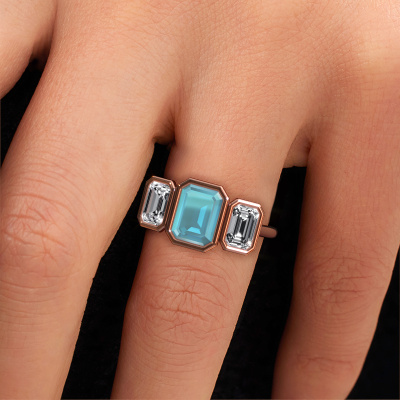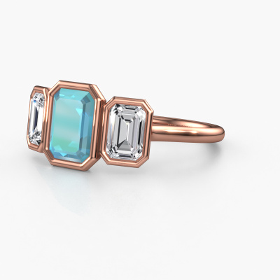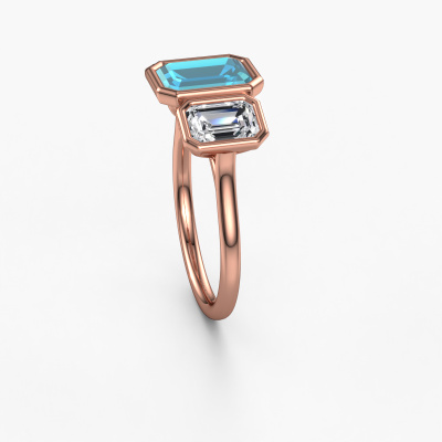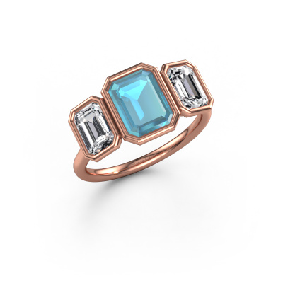 This 14 Carat rose gold ring is called Lavon 3 EME and is set with 8x6 mm blue topaz. This exclusive rose gold bezel set engagement ring is a true work of art! The ornaments are crafted with a lot of patience and great passion. In order to create this ring with great precision, this craft requires a keen eye and skilful hand. A challenge which ignites a fire in our expert goldsmith. The exquisite blue topaz are set in a special way so they stand out even more. This gives the ring an even more glamorous appearance. The special engagement ring is actually unique on its own because of the gemstones which we carefully select especially for this ring. On top of that you select the precious metals which will be used to create a unique ring for the most extraordinary woman in your life! This jewel [extra1_long][bestp1v_long]Do you have a specific ring in mind? One you came across somewhere. Please feel free to tell us your wishes and we will turn your design into a unique engagement ring. You can follow the development of your ring design because we use 3D drawings. This gives you a realistic preview of your design. We will gladly send you a non-binding offer, based on a fair price/ quality ratio. It will amaze you.To make it easier for you, we offer a 30 day return policy. Check our terms and conditions.