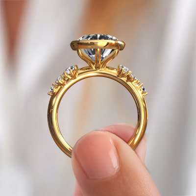 This 14 Carat gold ring is called Aliyah OVL and is set with lab grown diamond. Do you keep up with the latest fashion trends? Do you want a unique engagement ring that matches your lifestyle? This special engagement ring is an extraordinary ring which can be custom-made to fit your or her personal style. This modern gold engagement ring is set with lab grown diamond. Our lab-grown diamonds are carefully selected for this specific ring in order to create the best effect. Our expert goldsmith will create your ring in our own artisan studio where the lab grown diamond will be set with great care. The ring will then be polished to perfection. Nothing but the best for the love of your life! This jewel is made by a team of passionate goldsmiths and jewel designers. This will make your crown jewel truly eye-catching.By using a combination of the latest modern techniques, combined with ancient crafting, we can make all our engagement rings in our own studio. Each jewel is made to order. This is advantageous because we can offer you a price you won't find anywhere else.Different styles of new rings are made daily by our team. Perhaps you have found a bezel set engagement ring somewhere. One you would like to give to your loved one. Please feel free to share your thoughts and design with our jewel designers. We would love to turn your design into a modern engagement ring. You can follow the development of your ring design because we use very detailed 3D drawings. On top of that, you can order a dummy of the design. A dummy is a plastic ring, which can be shaped according your ring design. You can try it on and check if the engagement ring is up to standard. We will gladly send you a non-binding offer, based on a fair price/ quality ratio. The offer will baffle you, considering the quality of the ring and gemstones.To make it easier for you, we offer a 30 day return policy. Check our terms and conditions.