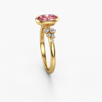 This 14 Carat gold ring is called Aliyah OVL and is set with pink lab grown diamond. Do you keep up with the latest fashion trends? Do you want a unique engagement ring that matches your lifestyle? This special engagement ring is an extraordinary ring which can be custom-made to fit your or her personal style. This modern gold engagement ring is set with pink lab grown diamond. Our pink lab grown diamonds are carefully selected for this specific ring in order to create the best effect. Our expert goldsmith will create your ring in our own artisan studio where the pink lab grown diamond will be set with great care. The ring will then be polished to perfection. Nothing but the best for the love of your life! This jewel is made by a team of passionate goldsmiths and jewel designers. This will make your crown jewel truly eye-catching.By using a combination of the latest modern techniques, combined with ancient crafting, we can make all our engagement rings in our own studio. Each jewel is made to order. This is advantageous because we can offer you a price you won't find anywhere else.Different styles of new rings are made daily by our team. Perhaps you have found a bezel set engagement ring somewhere. One you would like to give to your loved one. Please feel free to share your thoughts and design with our jewel designers. We would love to turn your design into a modern engagement ring. You can follow the development of your ring design because we use very detailed 3D drawings. On top of that, you can order a dummy of the design. A dummy is a plastic ring, which can be shaped according your ring design. You can try it on and check if the engagement ring is up to standard. We will gladly send you a non-binding offer, based on a fair price/ quality ratio. The offer will baffle you, considering the quality of the ring and gemstones.To make it easier for you, we offer a 30 day return policy. Check our terms and conditions.