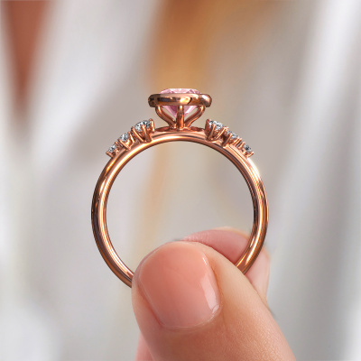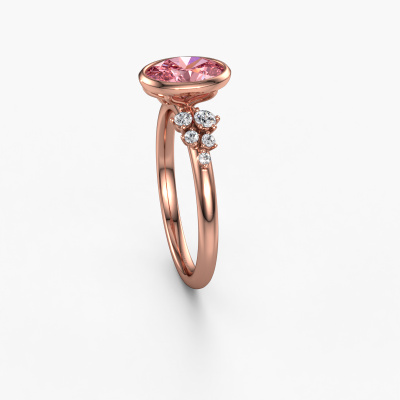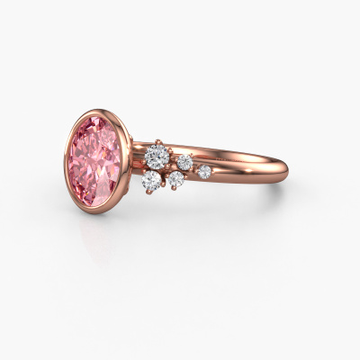 This 14 Carat rose gold ring is called Aliyah OVL and is set with pink lab grown diamond. Do you keep up with the latest fashion trends? Do you want a unique engagement ring that matches your lifestyle? This special engagement ring is an extraordinary ring which can be custom-made to fit your or her personal style. This modern rose gold engagement ring is set with pink lab grown diamond. Our pink lab grown diamonds are carefully selected for this specific ring in order to create the best effect. Our expert goldsmith will create your ring in our own artisan studio where the pink lab grown diamond will be set with great care. The ring will then be polished to perfection. Nothing but the best for the love of your life! This jewel is made by a team of passionate goldsmiths and jewel designers. This will make your crown jewel truly eye-catching.By using a combination of the latest modern techniques, combined with ancient crafting, we can make all our engagement rings in our own studio. Each jewel is made to order. This is advantageous because we can offer you a price you won't find anywhere else.Different styles of new rings are made daily by our team. Perhaps you have found a bezel set engagement ring somewhere. One you would like to give to your loved one. Please feel free to share your thoughts and design with our jewel designers. We would love to turn your design into a modern engagement ring. You can follow the development of your ring design because we use very detailed 3D drawings. On top of that, you can order a dummy of the design. A dummy is a plastic ring, which can be shaped according your ring design. You can try it on and check if the engagement ring is up to standard. We will gladly send you a non-binding offer, based on a fair price/ quality ratio. The offer will baffle you, considering the quality of the ring and gemstones.To make it easier for you, we offer a 30 day return policy. Check our terms and conditions.