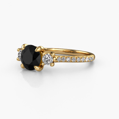 This 14 Carat gold ring is called Jesica and is set with 2.08 crt black diamond. What is it that makes your relationship unique? What is it about her that makes you want to bend down on one knee? The unique bond between the two of you is emphasized by an equally unique ring. A one of a kind graceful 3-stone engagement ring made especially for her. That is why this classic ring fits her like a glove. Each specific detail of this graceful gold black diamond set engagement ring is hand-picked, crafted and polished by our expert goldsmith. The result is an exquisite ring, unique and perfectly crafted to perfection. That is what our expert Goldsmiths strive for. This jewel is made just for you, with attention to detail and design.After receiving your order, our goldsmiths will passionately start the creative process of making your engagement ring in our own studio. Because we don't have a big stockpile, these costs will not be passed on to you. Our pricing is proof of that! We offer top quality jewels at lowest price, guaranteed.Different styles of new rings are made daily by our team. Perhaps you have found a 3-stone engagement ring somewhere. One you would like to give to your loved one. Please feel free to share your thoughts and design with our jewel designers. We would love to turn your design into a classic engagement ring. You can follow the development of your ring design because we use very detailed 3D drawings. On top of that, you can order a dummy of the design. A dummy is a plastic ring, which can be shaped according your ring design. You can try it on and check if the engagement ring is up to standard. We will gladly send you a non-binding offer, based on a fair price/ quality ratio. The offer will baffle you, considering the quality of the ring and gemstones.To make it easier for you, we offer a 30 day return policy. Check our terms and conditions.