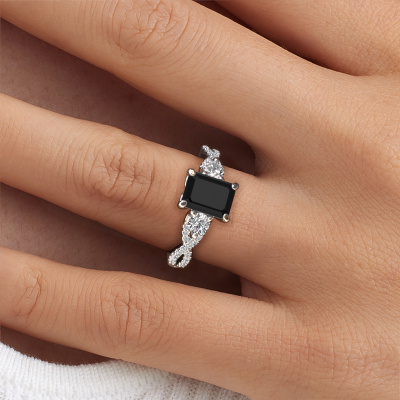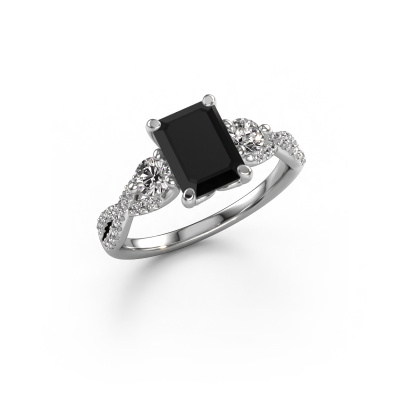 This platinum ring is called Marilou EME and is set with black diamond. How would you describe the style of the love of your life? Does she have a unique sense of style? This stunning split band platinum engagement ring can be custom-made to your own or her liking. Our black diamonds gemstones have been carefully selected because we believe your luxury engagement ring must be adorned with nothing but the most beautiful gemstone. Don't you agree? This jewel is made to shine bright around your finger. Each jewel is hand made with love by our goldsmiths.After receiving your order, our goldsmiths will start the creative process of making your Marilou EME engagement ring. We don't keep stock. This is advantageous because these costs will not be passed on to you. Therefore, we can offer jewellery at exceptionally low prices.Do you have a specific ring in mind? One you came across somewhere. Please feel free to tell us your wishes and we will turn your design into a unique engagement ring. You can follow the development of your ring design because we use 3D drawings. This gives you a realistic preview of your design. We will gladly send you a non-binding offer, based on a fair price/ quality ratio. It will amaze you.To make it easier for you, we offer a 30 day return policy. Check our terms and conditions.