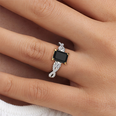 This 14 Carat white gold ring is called Marilou EME and is set with black diamond. How would you describe the style of the love of your life? Does she have a unique sense of style? This stunning split band white gold engagement ring can be custom-made to your own or her liking. Our black diamonds gemstones have been carefully selected because we believe your luxury engagement ring must be adorned with nothing but the most beautiful gemstone. Don't you agree? This jewel is made to shine bright around your finger. Each jewel is hand made with love by our goldsmiths.After receiving your order, our goldsmiths will start the creative process of making your Marilou EME engagement ring. We don't keep stock. This is advantageous because these costs will not be passed on to you. Therefore, we can offer jewellery at exceptionally low prices.Do you have a specific ring in mind? One you came across somewhere. Please feel free to tell us your wishes and we will turn your design into a unique engagement ring. You can follow the development of your ring design because we use 3D drawings. This gives you a realistic preview of your design. We will gladly send you a non-binding offer, based on a fair price/ quality ratio. It will amaze you.To make it easier for you, we offer a 30 day return policy. Check our terms and conditions.