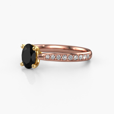 The ring shown above is called the Mignon ovl 2, we call this a solitaire ring because it contains a single gemstone. The engagement ring is made in 14 Carat rose gold and has a oval black diamond of 1.05 crt. The cool thing about our configurator is that you can compile your own piece of jewellery, into a completely personalized one. This solitaire ring is crafted in the precious metals rose gold with gold, but of course you are free to pick your own colours. Each piece of jewellery is made with passion and love by one of our master goldsmiths.The solitaire ring is a special type of engagement ring. Its open prong setting allows light to strike the gemstone from various angles. This chic engagement ring is a stunning eye-catcher because of the high positioning of the gemstone. In order for you to commemorate your proposal with a unique ring, we carefully adorn this solitaire ring by hand. The love of your life deserves nothing but the best. After receiving your order, our goldsmiths will passionately start the creative process of making your engagement ring in our own studio. Because we don't have a big stockpile, these costs will not be passed on to you. Our pricing is proof of that! We offer top quality jewels at lowest price, guaranteed.Our team adds new designs to our online collection daily. Our designers and goldsmiths work together in creating the best design. We strive to offer a diverse collection of jewels. Perhaps you have a specific jewel design in mind. One you came across somewhere. Please contact us for a free consultation. We will make you an offer, based on a fair price/ quality ratio, that will baffle you.To make it easier for you, we offer a 30 day return policy. Check our terms and conditions.