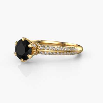 The ring shown above is called the Abby. We call this type of ring a pavé solitaire ring because it has one centre gemstone and a band that is also pave set with gemstones. The 14 Carat gold engagement ring is set with a round 1.30 crt black diamond centre stone and the band is pave set with diamond gemstones. Each jewel is made just for you by our master goldsmiths in our own studio.This exclusive gold pavé solitaire engagement ring has an exquisite round black diamond centre stone. To further accentuate the centre stone, the band is fully set with more diamonds. Its open prong setting allows light to strike the black diamond from various angles and this adds sparkle to your black diamond ring. The photo shown above depicts the goldsmith's carefully handcrafted details of the ring. The high positioning of the centre stone is truly eye-catching. The perfect engagement ring for the crown jewel of your life! Are you on a budget? Please feel free to contact us, so we can go discuss your options. We offer our engagement rings at guaranteed best price, because we make them to order. You won't find such a price anywhere else!Our team adds new designs to our online collection daily. Our designers and goldsmiths work together in creating the best design. We strive to offer a diverse collection of jewels. Perhaps you have a specific jewel design in mind. One you came across somewhere. Please contact us for a free consultation. We will make you an offer, based on a fair price/ quality ratio, that will baffle you.To make it easier for you, we offer a 30 day return policy. Check our terms and conditions.