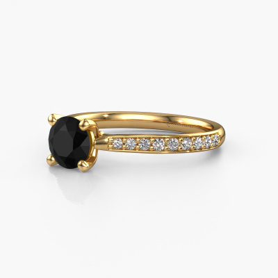 The ring shown above is called the Mignon rnd 2. We call this type of ring a pavé solitaire ring because it has one centre gemstone and a band that is also pave set with gemstones. The 14 Carat gold engagement ring is set with a round 0.96 crt black diamond centre stone and the band is pave set with lab grown diamond gemstones. Each jewel is made by a team of passionate goldsmiths and jewel designers. This will make your crown jewel truly eye-catching.This luxury gold pavé solitaire engagement ring has an exquisite round black diamond centre stone. To further accentuate the centre stone, the band is fully set with more lab-grown diamonds. Its open prong setting allows light to strike the black diamond from various angles and this adds sparkle to your black diamond ring. The photo shown above depicts the goldsmith's carefully handcrafted details of the ring. The high positioning of the centre stone is truly eye-catching. The perfect engagement ring for the crown jewel of your life! By using our modern techniques, we can design and customize the finest quality jewels with the utmost care for you. Our engagement rings are always priced 30 percent lower than other jewellers. We make engagement rings to order so we don't have to maintain a large stock. If you have a certain budget, we are more than happy to advice you accordingly.Different styles of new rings are made daily by our team. Perhaps you have found a pavé solitaire engagement ring somewhere. One you would like to give to your loved one. Please feel free to share your thoughts and design with our jewel designers. We would love to turn your design into a luxury engagement ring. You can follow the development of your ring design because we use very detailed 3D drawings. On top of that, you can order a dummy of the design. A dummy is a plastic ring, which can be shaped according your ring design. You can try it on and check if the engagement ring is up to standard. We will gladly send you a non-binding offer, based on a fair price/ quality ratio. The offer will baffle you, considering the quality of the ring and gemstones.To make it easier for you, we offer a 30 day return policy. Check our terms and conditions.