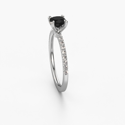 The ring shown above is called the Crystal CUS 2. We call this type of ring a pavé solitaire ring because it has one centre gemstone and a band that is also pave set with gemstones. The platinum engagement ring is set with a cushion 0.70 crt black diamond centre stone and the band is pave set with diamond gemstones. Each jewel is made just for you by our master goldsmiths in our own studio.This classic platinum pavé solitaire engagement ring has an exquisite cushion black diamond centre stone. To further accentuate the centre stone, the band is fully set with more diamonds. Its open prong setting allows light to strike the black diamond from various angles and this adds sparkle to your black diamond ring. The photo shown above depicts the goldsmith's carefully handcrafted details of the ring. The high positioning of the centre stone is truly eye-catching. The perfect engagement ring for the crown jewel of your life! After receiving your order, our goldsmiths will start the creative process of making your Crystal CUS 2 engagement ring. We don't keep stock. This is advantageous because these costs will not be passed on to you. Therefore, we can offer jewellery at exceptionally low prices.Different styles of new rings are made daily by our team. Perhaps you have found a pavé solitaire engagement ring somewhere. One you would like to give to your loved one. Please feel free to share your thoughts and design with our jewel designers. We would love to turn your design into a classic engagement ring. You can follow the development of your ring design because we use very detailed 3D drawings. On top of that, you can order a dummy of the design. A dummy is a plastic ring, which can be shaped according your ring design. You can try it on and check if the engagement ring is up to standard. We will gladly send you a non-binding offer, based on a fair price/ quality ratio. The offer will baffle you, considering the quality of the ring and gemstones.To make it easier for you, we offer a 30 day return policy. Check our terms and conditions.