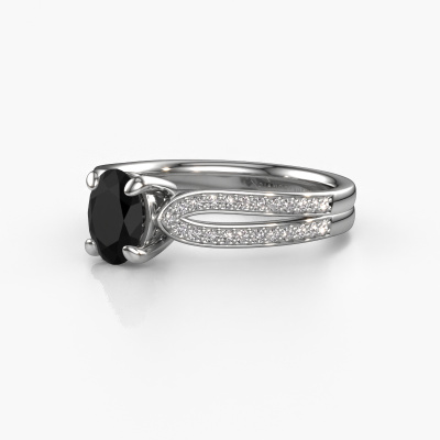 The ring shown above is called the Antonia ovl 2. We call this type of ring a pavé solitaire ring because it has one centre gemstone and a band that is also pave set with gemstones. The platinum engagement ring is set with a oval 1.05 crt black diamond centre stone and the band is pave set with diamond gemstones. Each jewel is unique in every way! Simply customize to your liking,This contemporary platinum pavé solitaire engagement ring has an exquisite oval black diamond centre stone. To further accentuate the centre stone, the band is fully set with more diamonds. Its open prong setting allows light to strike the black diamond from various angles and this adds sparkle to your black diamond ring. The photo shown above depicts the goldsmith's carefully handcrafted details of the ring. The high positioning of the centre stone is truly eye-catching. The perfect engagement ring for the crown jewel of your life! By using a combination of the latest modern techniques, combined with ancient crafting, we can make all our engagement rings in our own studio. Each jewel is made to order. This is advantageous because we can offer you a price you won't find anywhere else.Our team adds new designs to our online collection daily. Our designers and goldsmiths work together in creating the best design. We strive to offer a diverse collection of jewels. Perhaps you have a specific jewel design in mind. One you came across somewhere. Please contact us for a free consultation. We will make you an offer, based on a fair price/ quality ratio, that will baffle you.To make it easier for you, we offer a 30 day return policy. Check our terms and conditions.