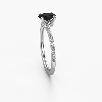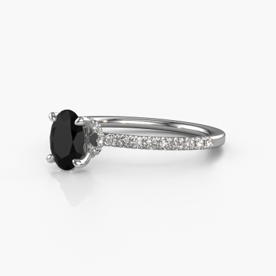 The ring shown above is called the Crystal OVL 4. We call this type of ring a pavé solitaire ring because it has one centre gemstone and a band that is also pave set with gemstones. The platinum engagement ring is set with a oval 1.05 crt black diamond centre stone and the band is pave set with diamond gemstones. Each jewel is made with passion and love by one of our master goldsmiths.This contemporary platinum pavé solitaire engagement ring has an exquisite oval black diamond centre stone. To further accentuate the centre stone, the band is fully set with more diamonds. Its open prong setting allows light to strike the black diamond from various angles and this adds sparkle to your black diamond ring. The photo shown above depicts the goldsmith's carefully handcrafted details of the ring. The high positioning of the centre stone is truly eye-catching. The perfect engagement ring for the crown jewel of your life! After receiving your order, our goldsmiths will passionately start the creative process of making your engagement ring in our own studio. Because we don't have a big stockpile, these costs will not be passed on to you. Our pricing is proof of that! We offer top quality jewels at lowest price, guaranteed.Our team adds new designs to our online collection daily. Our designers and goldsmiths work together in creating the best design. We strive to offer a diverse collection of jewels. Perhaps you have a specific jewel design in mind. One you came across somewhere. Please contact us for a free consultation. We will make you an offer, based on a fair price/ quality ratio, that will baffle you.To make it easier for you, we offer a 30 day return policy. Check our terms and conditions.