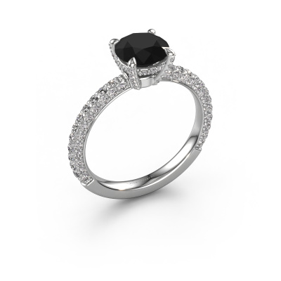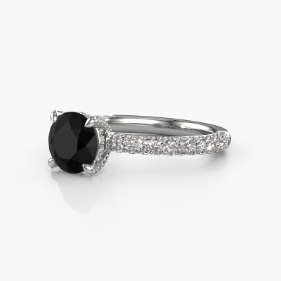 The ring shown above is called the Saskia rnd 2. We call this type of ring a pavé solitaire ring because it has one centre gemstone and a band that is also pave set with gemstones. The platinum engagement ring is set with a round 1.80 crt black diamond centre stone and the band is pave set with lab grown diamond gemstones. Each jewel is made by a team of passionate goldsmiths and jewel designers. This will make your crown jewel truly eye-catching.This exclusive platinum pavé solitaire engagement ring has an exquisite round black diamond centre stone. To further accentuate the centre stone, the band is fully set with more lab-grown diamonds. Its open prong setting allows light to strike the black diamond from various angles and this adds sparkle to your black diamond ring. The photo shown above depicts the goldsmith's carefully handcrafted details of the ring. The high positioning of the centre stone is truly eye-catching. The perfect engagement ring for the crown jewel of your life! After receiving your order, our goldsmiths will passionately start the creative process of making your engagement ring in our own studio. Because we don't have a big stockpile, these costs will not be passed on to you. Our pricing is proof of that! We offer top quality jewels at lowest price, guaranteed.Our team adds new designs to our online collection daily. Our designers and goldsmiths work together in creating the best design. We strive to offer a diverse collection of jewels. Perhaps you have a specific jewel design in mind. One you came across somewhere. Please contact us for a free consultation. We will make you an offer, based on a fair price/ quality ratio, that will baffle you.To make it easier for you, we offer a 30 day return policy. Check our terms and conditions.