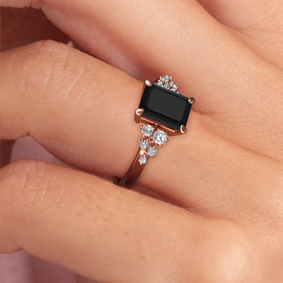 This 14 Carat rose gold ring is called Royce EME and is set with 2.303 crt black diamond. What is it that makes your relationship unique? What is it about her that makes you want to bend down on one knee? The unique bond between the two of you is