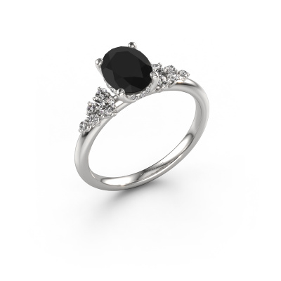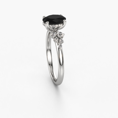 This 14 Carat white gold ring is called Emma OVL and is set with black diamond. How would you describe the style of the love of your life? Does she have a unique sense of style? This stunning sublime white gold engagement ring can be custom-made to your own or her liking. Our black diamonds gemstones have been carefully selected because we believe your fantasy engagement ring must be adorned with nothing but the most beautiful gemstone. Don't you agree? This jewel is made by a team of passionate goldsmiths and jewel designers. This will make your crown jewel truly eye-catching.By using a combination of the latest modern techniques, combined with ancient crafting, we can make all our engagement rings in our own studio. Each jewel is made to order. This is advantageous because we can offer you a price you won't find anywhere else.Different styles of new rings are made daily by our team. Perhaps you have found a pavé solitaire engagement ring somewhere. One you would like to give to your loved one. Please feel free to share your thoughts and design with our jewel designers. We would love to turn your design into a fantasy engagement ring. You can follow the development of your ring design because we use very detailed 3D drawings. On top of that, you can order a dummy of the design. A dummy is a plastic ring, which can be shaped according your ring design. You can try it on and check if the engagement ring is up to standard. We will gladly send you a non-binding offer, based on a fair price/ quality ratio. The offer will baffle you, considering the quality of the ring and gemstones.To make it easier for you, we offer a 30 day return policy. Check our terms and conditions.