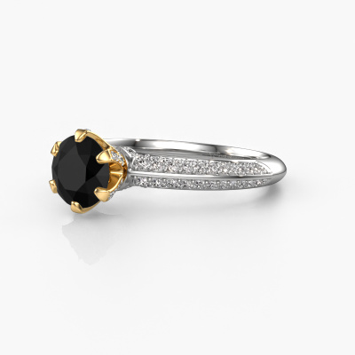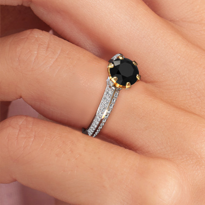 The ring shown above is called the Abby. We call this type of ring a pavé solitaire ring because it has one centre gemstone and a band that is also pave set with gemstones. The 14 Carat white gold engagement ring is set with a round 1.30 crt black diamond centre stone and the band is pave set with diamond gemstones. Each jewel is made just for you by our master goldsmiths in our own studio.This exclusive white gold pavé solitaire engagement ring has an exquisite round black diamond centre stone. To further accentuate the centre stone, the band is fully set with more diamonds. Its open prong setting allows light to strike the black diamond from various angles and this adds sparkle to your black diamond ring. The photo shown above depicts the goldsmith's carefully handcrafted details of the ring. The high positioning of the centre stone is truly eye-catching. The perfect engagement ring for the crown jewel of your life! Are you on a budget? Please feel free to contact us, so we can go discuss your options. We offer our engagement rings at guaranteed best price, because we make them to order. You won't find such a price anywhere else!Our team adds new designs to our online collection daily. Our designers and goldsmiths work together in creating the best design. We strive to offer a diverse collection of jewels. Perhaps you have a specific jewel design in mind. One you came across somewhere. Please contact us for a free consultation. We will make you an offer, based on a fair price/ quality ratio, that will baffle you.To make it easier for you, we offer a 30 day return policy. Check our terms and conditions.