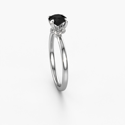 The ring shown above is called the Crystal RND 3, we call this a solitaire ring because it contains a single gemstone. The engagement ring is made in platinum and has a round black diamond of 0.78 crt. The cool thing about our configurator is that you can compile your own piece of jewellery, into a completely personalized one. This solitaire ring is crafted in the precious metals platinum with platinum, but of course you are free to pick your own colours. Each piece of jewellery is made with passion and love by one of our master goldsmiths.The solitaire ring is a special type of engagement ring. Its open prong setting allows light to strike the gemstone from various angles. This classic engagement ring is a stunning eye-catcher because of the high positioning of the gemstone. In order for you to commemorate your proposal with a unique ring, we carefully adorn this solitaire ring by hand. The love of your life deserves nothing but the best. By using a combination of the latest modern techniques, combined with ancient crafting, we can make all our engagement rings in our own studio. Each jewel is made to order. This is advantageous because we can offer you a price you won't find anywhere else.Different styles of new rings are made daily by our team. Perhaps you have found a solitaire engagement ring somewhere. One you would like to give to your loved one. Please feel free to share your thoughts and design with our jewel designers. We would love to turn your design into a classic engagement ring. You can follow the development of your ring design because we use very detailed 3D drawings. On top of that, you can order a dummy of the design. A dummy is a plastic ring, which can be shaped according your ring design. You can try it on and check if the engagement ring is up to standard. We will gladly send you a non-binding offer, based on a fair price/ quality ratio. The offer will baffle you, considering the quality of the ring and gemstones.To make it easier for you, we offer a 30 day return policy. Check our terms and conditions.