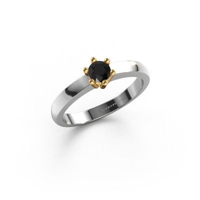 The ring shown above is called the Luna 1, we call this a solitaire ring because it contains a single gemstone. The engagement ring is made in 14 Carat white gold and has a round black diamond of 0.24 crt. The cool thing about our configurator is that you can compile your own piece of jewellery, into a completely personalized one. This solitaire ring is crafted in the precious metals white gold with gold, but of course you are free to pick your own colours. Each piece of jewellery is made with passion and love by one of our master goldsmiths.The solitaire ring is a special type of engagement ring. Its open prong setting allows light to strike the gemstone from various angles. This classic engagement ring is a stunning eye-catcher because of the high positioning of the gemstone. In order for you to commemorate your proposal with a unique ring, we carefully adorn this solitaire ring by hand. The love of your life deserves nothing but the best. After receiving your order, our goldsmiths will start the creative process of making your Luna 1 engagement ring. We don't keep stock. This is advantageous because these costs will not be passed on to you. Therefore, we can offer jewellery at exceptionally low prices.Our designers and goldsmiths work together each day, creating new jewels. Perhaps you have found a nice classic engagement ring somewhere, which can be used to customize your unique ring. Please feel free to contact us. We will make you an offer, based on a fair price/ quality ratio, which will amaze you.To make it easier for you, we offer a 30 day return policy. Check our terms and conditions.