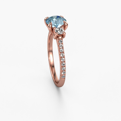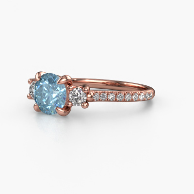 This 14 Carat rose gold ring is called Jesica and is set with 6.8 mm blue lab grown diamond. What is it that makes your relationship unique? What is it about her that makes you want to bend down on one knee? The unique bond between the two of you is emphasized by an equally unique ring. A one of a kind graceful 3-stone engagement ring made especially for her. That is why this classic ring fits her like a glove. Each specific detail of this graceful rose gold blue lab grown diamond set engagement ring is hand-picked, crafted and polished by our expert goldsmith. The result is an exquisite ring, unique and perfectly crafted to perfection. That is what our expert Goldsmiths strive for. This jewel is made just for you, with attention to detail and design.After receiving your order, our goldsmiths will passionately start the creative process of making your engagement ring in our own studio. Because we don't have a big stockpile, these costs will not be passed on to you. Our pricing is proof of that! We offer top quality jewels at lowest price, guaranteed.Different styles of new rings are made daily by our team. Perhaps you have found a 3-stone engagement ring somewhere. One you would like to give to your loved one. Please feel free to share your thoughts and design with our jewel designers. We would love to turn your design into a classic engagement ring. You can follow the development of your ring design because we use very detailed 3D drawings. On top of that, you can order a dummy of the design. A dummy is a plastic ring, which can be shaped according your ring design. You can try it on and check if the engagement ring is up to standard. We will gladly send you a non-binding offer, based on a fair price/ quality ratio. The offer will baffle you, considering the quality of the ring and gemstones.To make it easier for you, we offer a 30 day return policy. Check our terms and conditions.