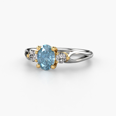 This 14 Carat white gold ring is called Amie OVL and is set with 7x5 mm blue lab grown diamond. What is it that makes your relationship unique? What is it about her that makes you want to bend down on one knee? The unique bond between the two of you is emphasized by an equally unique ring. A one of a kind stylish 3-stone engagement ring made especially for her. That is why this fantasy ring fits her like a glove. Each specific detail of this stylish white gold blue lab grown diamond set engagement ring is hand-picked, crafted and polished by our expert goldsmith. The result is an exquisite ring, unique and perfectly crafted to perfection. That is what our expert Goldsmiths strive for. This jewel is made to shine bright around your finger. Each jewel is hand made with love by our goldsmiths.By using our modern techniques, we can design and customize the finest quality jewels with the utmost care for you. Our engagement rings are always priced 30 percent lower than other jewellers. We make engagement rings to order so we don't have to maintain a large stock. If you have a certain budget, we are more than happy to advice you accordingly.Do you have a specific ring in mind? One you came across somewhere. Please feel free to tell us your wishes and we will turn your design into a unique engagement ring. You can follow the development of your ring design because we use 3D drawings. This gives you a realistic preview of your design. We will gladly send you a non-binding offer, based on a fair price/ quality ratio. It will amaze you.To make it easier for you, we offer a 30 day return policy. Check our terms and conditions.