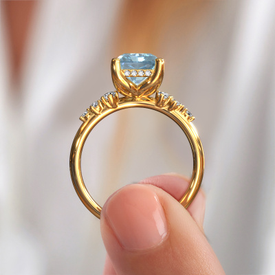 This 14 Carat gold ring is called Emma RAD and is set with 9x7 mm blue lab grown diamond. What is it that makes your relationship unique? What is it about her that makes you want to bend down on one knee? The unique bond between the two of you is emphasized by an equally unique ring. A one of a kind stylish pavé solitaire engagement ring made especially for her. That is why this exclusive ring fits her like a glove. Each specific detail of this stylish gold blue lab grown diamond set engagement ring is hand-picked, crafted and polished by our expert goldsmith. The result is an exquisite ring, unique and perfectly crafted to perfection. That is what our expert Goldsmiths strive for. This jewel is made by a team of passionate goldsmiths and jewel designers. This will make your crown jewel truly eye-catching.Because we design and deliver our own rings, we can offer you a engagement ring at a price you won't find anywhere else. A ring is made to order, which helps prevent excess supplies, so we can make you a great price offer. We understand it feels risky, buying your engagement ring online, but we will gladly assist in the designing process, taking your budget into consideration.Our designers and goldsmiths work together each day, creating new jewels. Perhaps you have found a nice exclusive engagement ring somewhere, which can be used to customize your unique ring. Please feel free to contact us. We will make you an offer, based on a fair price/ quality ratio, which will amaze you.To make it easier for you, we offer a 30 day return policy. Check our terms and conditions.