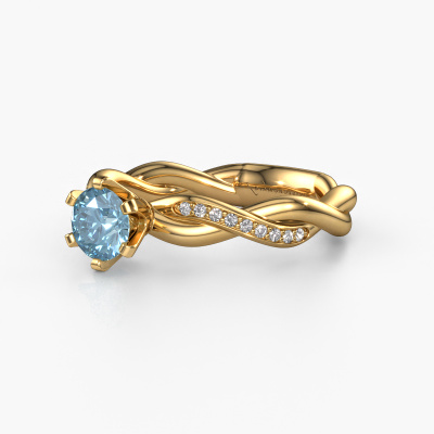 In your eyes, no one else compares to her. She is one in a million, unlike anyone else and pure? These qualities are emphasized perfectly by our fantasy gold solitaire blue lab grown diamond ring. This blue lab grown diamond is carefully selected by our keen artisan goldsmiths. It equals the unique qualities of the love of your life. There is no better way to memorialize your proposal than this symbol of true love. The ring shown above is called the Page, we call this a solitaire ring because it contains a single gemstone. The engagement ring is made in 14 Carat gold and has a round blue lab grown diamond of 5.4 mm. Each piece of jewellery is made with passion and love by one of our master goldsmiths.Are you on a budget? Please feel free to contact us, so we can go discuss your options. We offer our engagement rings at guaranteed best price, because we make them to order. You won't find such a price anywhere else!Do you have a specific ring in mind? One you came across somewhere. Please feel free to tell us your wishes and we will turn your design into a unique engagement ring. You can follow the development of your ring design because we use 3D drawings. This gives you a realistic preview of your design. We will gladly send you a non-binding offer, based on a fair price/ quality ratio. It will amaze you.To make it easier for you, we offer a 30 day return policy. Check our terms and conditions.